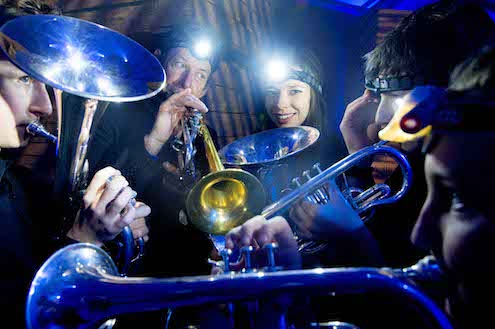 Virtuoso trumpeter John Wallace (centre left), with Rebecca Bromage (centre) and fellow members of Fife’s award-winning Tullis Russell Mills Band in rehearsal for De Profundis. Photography for East Neuk Festival from: Colin Hattersley Photography